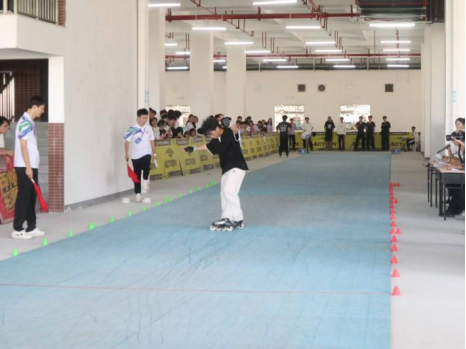 本次赛事分别有甲、乙、丙三个组别,设有速滑团体接力、个人300米速滑、单人花式绕桩、速度过桩、花式刹停、轮滑拉拢、轮滑舞蹈等8个项目,吸引全省近50所高校、逾600名运动员同场竞技。