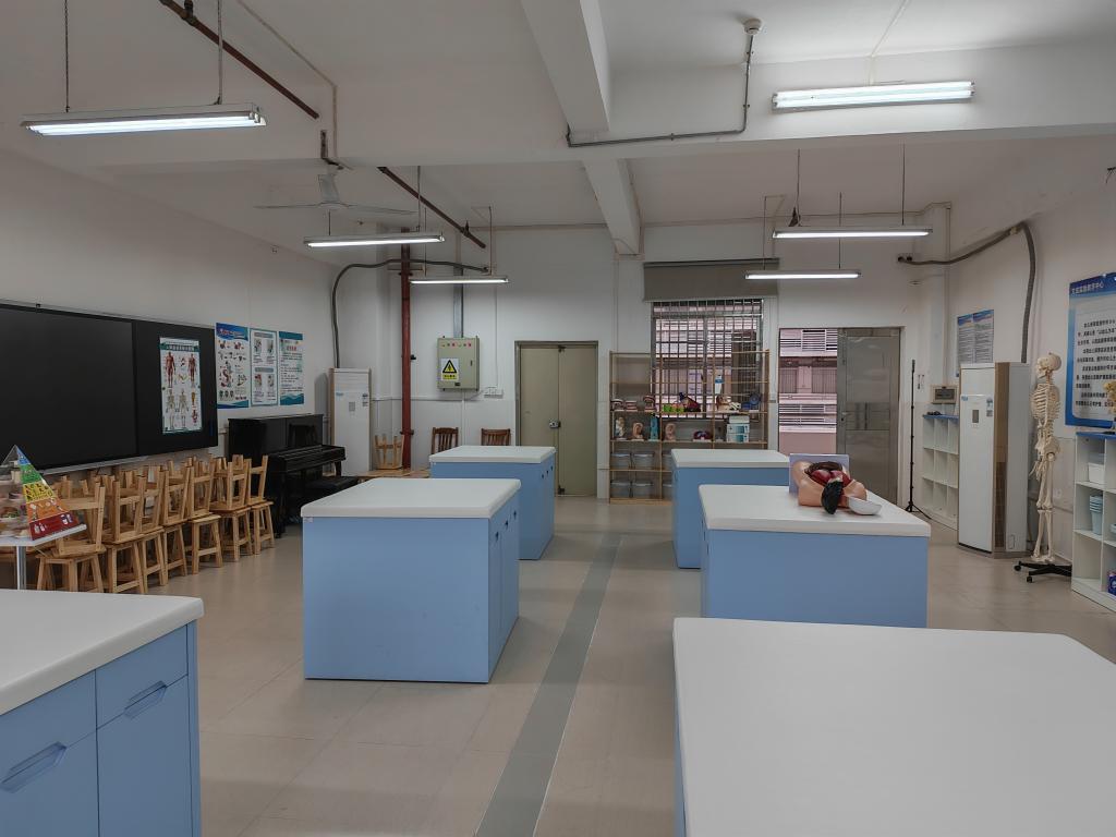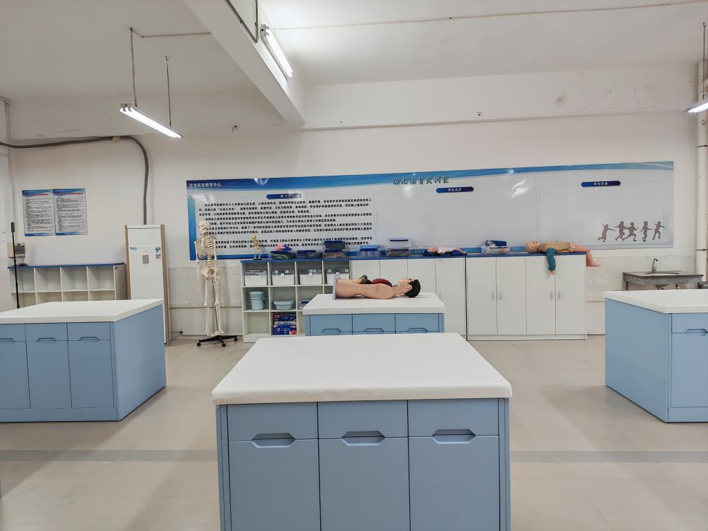 实训室占地面积 87 平方米,配备了一系列贴合婴幼儿保育教学需求的专业设施与教学资源:包括展示人体生理结构的八大系统挂图、供婴幼儿抚触护理实操训练的操作抚触台、直观呈现人体构造的各类人体器官模型,以及警示婴幼儿安全防护要点的警惕儿童意外伤害挂图等。