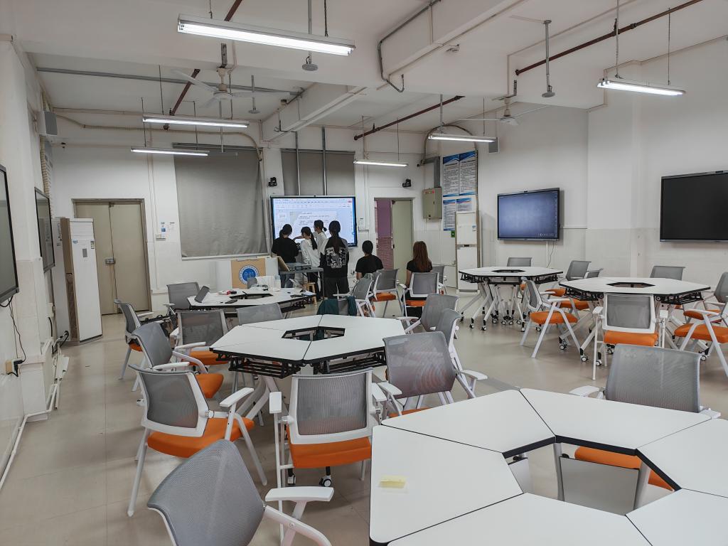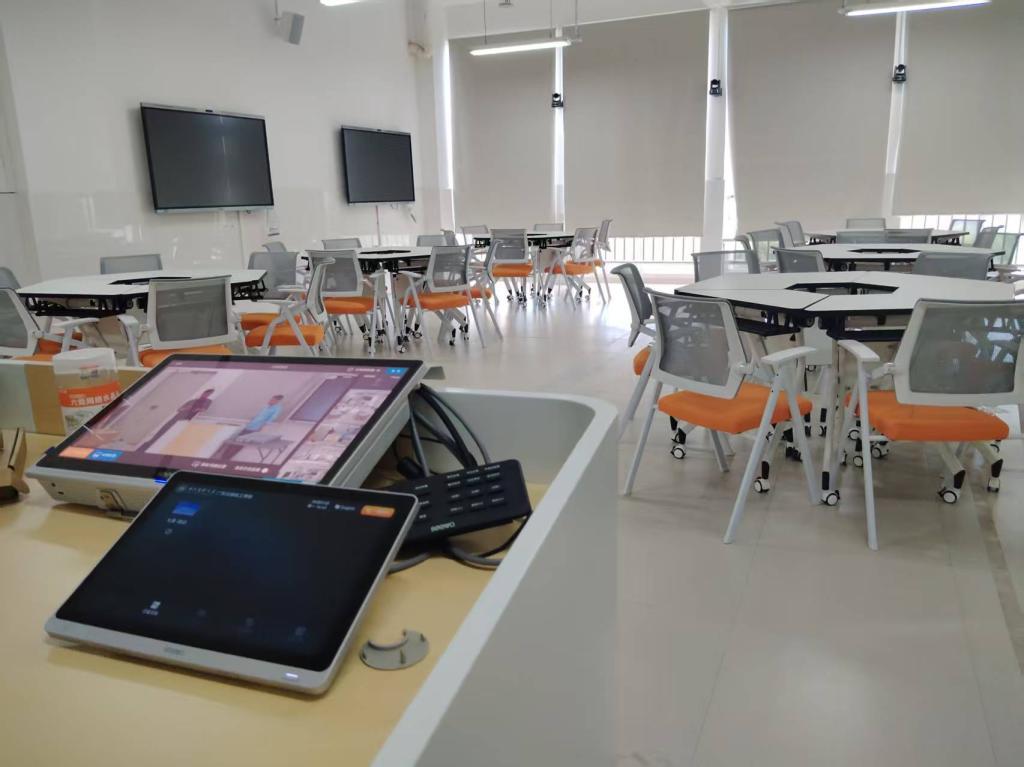 这些设施共同构建了功能完善的智慧研讨环境,既能满足跨区域的远程互动教学、学术研讨需求,也能灵活支持学生开展小组分组讨论、教学方案展示、案例分析汇报等活动,不仅有效服务于学前教育专业学生开展教学与实践实训活动,也可用于文法学院中文专业、法学专业、历史专业开展各类实践教学活动,是培养学生信息化教学能力与团队协作素养的重要平台。