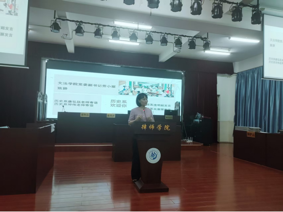 劳小丽副书记在致辞中欢迎新同学加入历史学大家庭。她强调,历史不仅是过去的记载,更是思想的航程,能够启迪智慧、映照现实、照亮未来。她鼓励同学们在大学期间保持求知热情,主动构建知识体系,为成长为优秀教育工作者奠定坚实基础。唐弘廷博士从跨文化视角出发,指出历史学习需具备全球眼光。他鼓励同学们在深耕中国历史的同时,拓展世界历史的认知,以开放包容的态度面对多元文化,为未来从事教育教学工作储备国际素养。邓伟博士聚焦师范生的专业能力培养,强调扎实的专业基础与实践经验并重。他建议同学们重视通史课程学习,积极参与教学实践,锤炼课堂讲授与班级管理能力,努力践行“学高为师、身正为范”的职业理念。优秀校友代表吴康丽结合自身从学生到教师的成长经历,分享了专业学习与职业发展的心得。她建议学弟学妹尽早明确方向,积极参与教学竞赛、德育研究等活动,全面提升综合素养,将历史学科所培养的思辨、表达与人文关怀能力转化为育人优势。