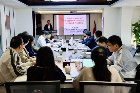 11月30日上午,由茂名市法学会、茂名市地方立法学研究会、茂名市环境资源法学研究会主办,文法学院、广东诚挚律师事务所联合承办的“学习贯彻党的二十届四中全会精神暨生态环境立法助力茂名百千万工程高质量发展交流会”在广东诚挚律师事务所会议室举行。茂名市法学会专职副会长兼秘书长梁勇、文法学院院长(市环境资源法学研究会会长)马波、茂名市法学会地方立法研究会会长(广东省律师协会副会长)彭华以及来自市环境资源法学研究会、地方立法会研究会的副会长、常务理事、理事、监事等二十余位专家学者、律师参加了会议。