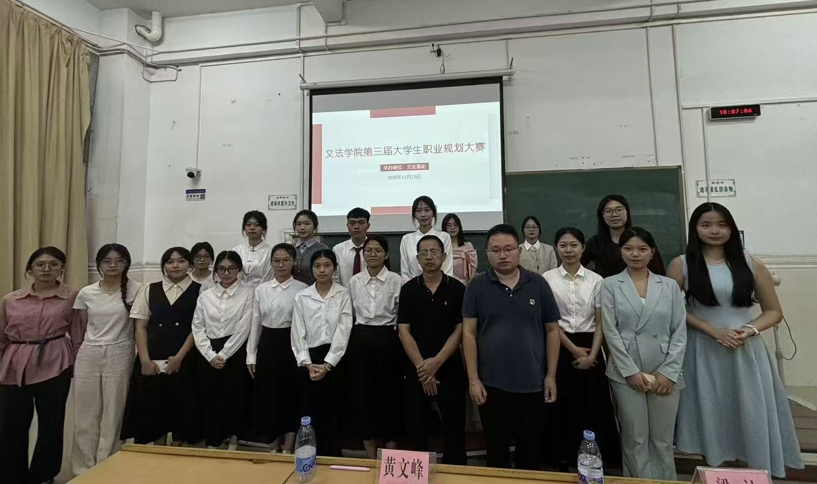 11月15日下午,文法学院在2教B-201成功举办第三届职业规划大赛院赛。本次比赛由文法素拓中心主办,并邀请广东石油化工学院文法创新创业与培训中心主任、茂名市文秘研究会会长梁沛,辅导员黄文峰老师、詹碧云老师担任评委。