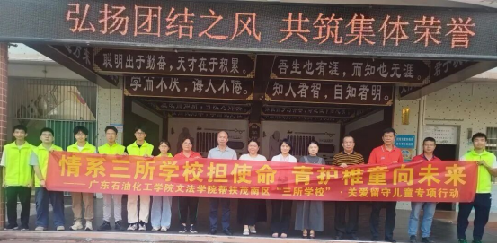 11 月 17 日至 18 日,文法学院联合茂南区教师发展中心,在茂南区袂花镇中心小学、北斗小学及鳌头镇中心小学,开展帮扶茂南区“三所学校” 关爱留守儿童专项行动。学院党委副书记劳小丽、团委书记吴飞,茂南区教育局德育股股长何雅丽,茂南区教师发展中心培训室副主任陈杰文,及袂花镇、鳌头镇中心小学负责人等出席活动。
