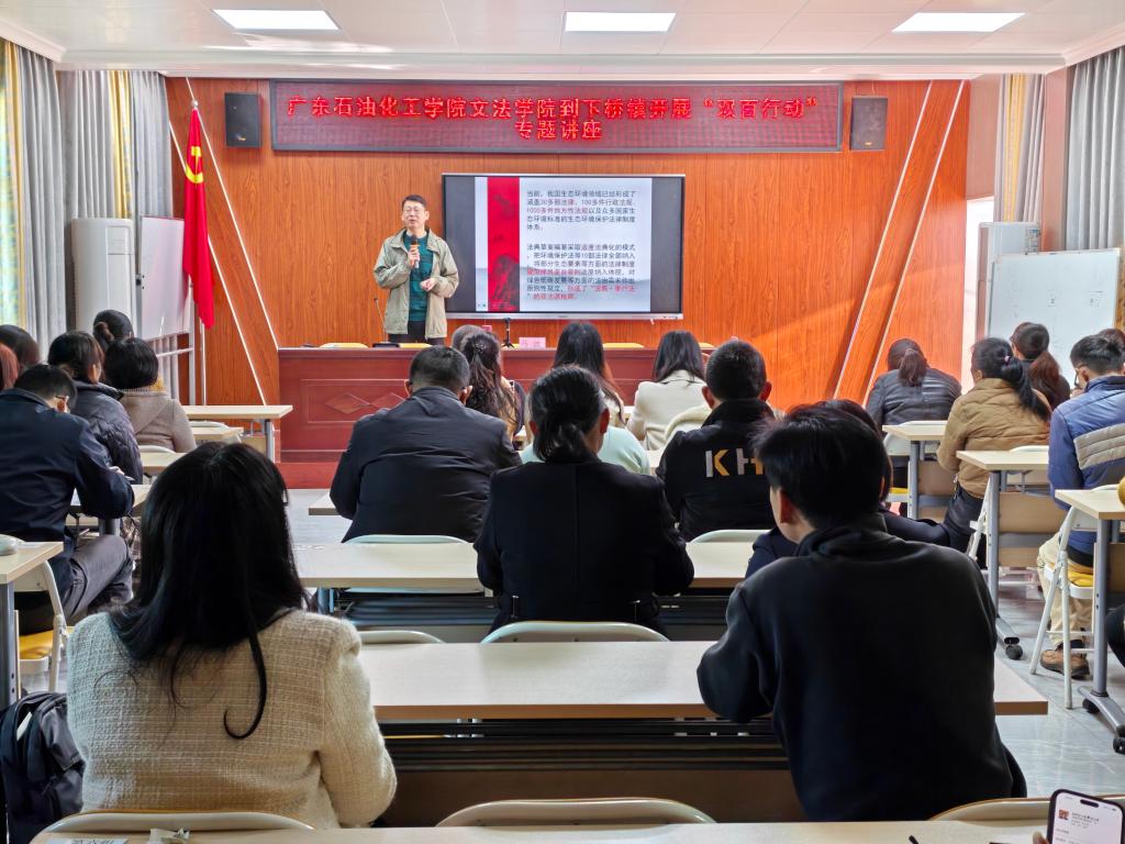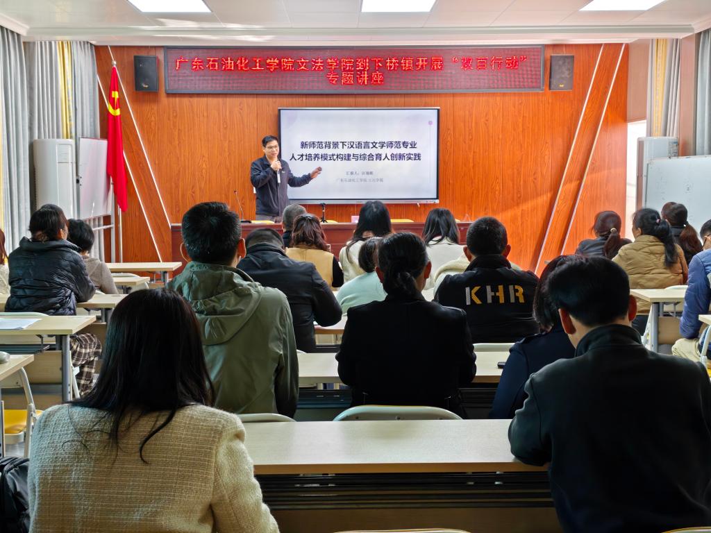 1月9日,为深入推动“双百行动”,助力乡村振兴,文法学院院长马波率队赴徐闻县下桥镇开展专题活动,面向当地中小学教师举办专题讲座。学院党委副书记劳小丽、副院长区锦联、中文系主任助理方海鹏等共同参与。