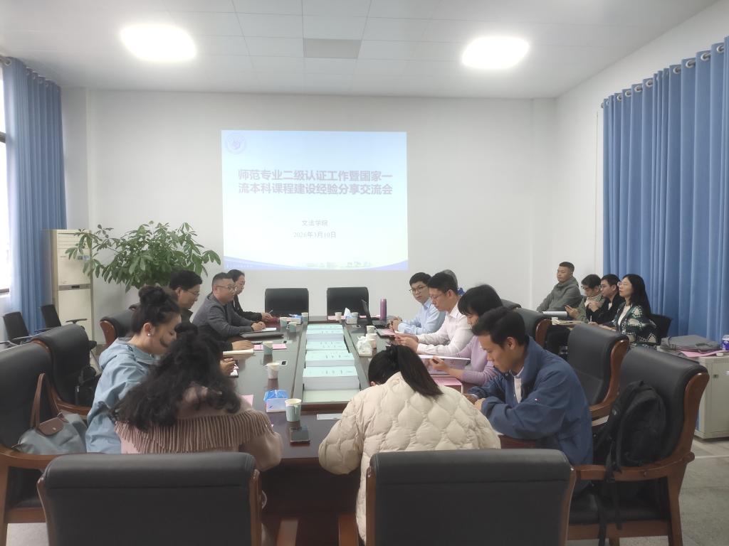为扎实推进师范专业二级认证整改工作,加强学院间交流协作,共享课程建设经验,文法学院与艺术学院于3月10日下午在科技楼511会议室联合召开师范专业二级认证工作暨国家一流本科课程建设经验分享交流会。会议由文法学院副院长区锦联主持,两院相关负责人及骨干教师参加会议。