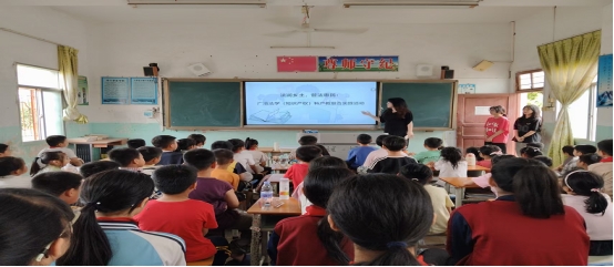 为深化法学专业实践教学,助力乡村法治教育与平安校园建设,推动法学(知识产权)科产教融合实践教学基地建设。2026年4月13日至14日,在邱雪璐、申如锦两位老师的带领下,法学专业24级全体学生前往化州市良光镇豺岭、塘贡、雅道及大山四所乡村小学,开展为期两天的专业见习与科产教融合实践教学活动。同学们化身“普法讲师”,用青春力量传递法治温度,为乡村孩童送上实用、生动的法律知识课堂。