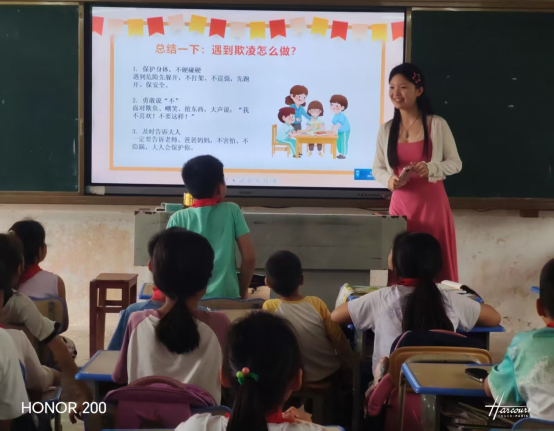 互动问答环节气氛热烈,面对孩子们天真又充满好奇的提问,“小讲师”们耐心细致解答,用通俗语言化解法律疑问,用积极鼓励激发学法热情。在一问一答间,抽象的法律条文变得鲜活可感,法治的种子悄然播撒进孩子们的心田。四所小学的师生对本次活动给予高度评价,纷纷表示普法内容贴合实际、形式生动有趣,有效填补了乡村学校法治教育的空白。