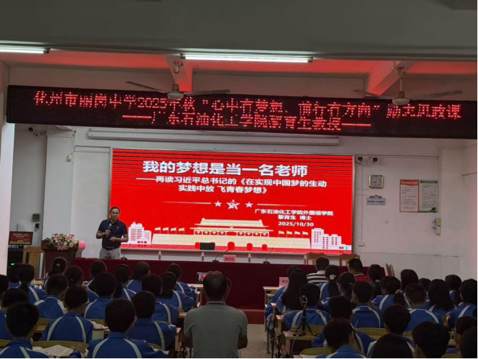 据悉,在学生中开展“心中有梦想,前行有方向”励志主题思政课是中共化州市委宣传部、化州市教育局举办,广东石油化工学院指导,面向化州市全体中学生的专题思政课,活动主旨在于引导全市中学生树立正确理想信念,明确人生发展方向,增强责任担当意识,培育和践行社会主义核心价值观,助力中学生健康成长成才。