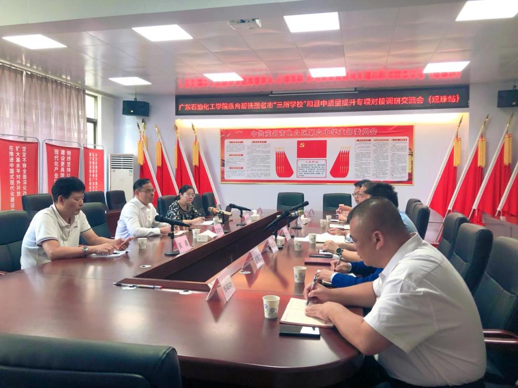 作为电白六中校友,黎育生书记在校园参观中感慨母校发展变迁,与李东升校长深入交流校园文化建设与办学特色。交流会上,黎育生书记介绍了学校学院的历史与现状,阐明了前往观珠开展帮扶活动的初心使命,观珠各有关学校负责人分别介绍了本校发展历史现状、办学优点、难点与痛点。在听取有关汇报后,会议研究敲定了“九项帮扶举措”:组建专业团队筑牢心理防线、开展大学校园研学之旅、建立实习基地补给师资,举办 AI 赋能培训提升教法,通过“同课异构”碰撞教学智慧、以精品主题思政课为抓手推进大中小学思政教育一体化建设、挖掘本土文化,厚植校园精神和开展外教进校园激发英语兴趣和举办新中考、新课程、新课标专题培训。