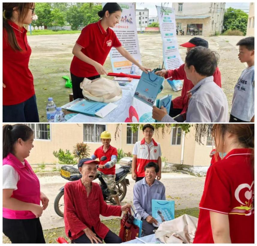 为深入贯彻国家资助政策,助力乡村振兴,打通政策宣传“最后一公里”,2025年7月,外国语学院“合心逐光队”深入化州丽岗开展 2025年国家资助和助学贷款政策下乡行实践活动,活动受到当地群众的热烈欢迎和高度评价。