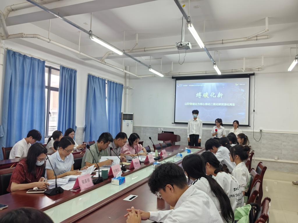 本届赛事设置"6分钟项目展示+4分钟答辩"的标准化赛制,重点考察技术创新性、市场可行性及社会价值三大维度。路演团队根据抽签顺序上台路演,围绕酰胺药物中间体精准合成、碳吸收利用和转化等方向,通过专利成果展示、商业模式推演等形式,呈现了"钴聚擎电"、"智创酰行"等9个优质项目。