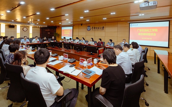 广东技术师范大学党委常委、副校长邓文新对万勇一行的到来表示欢迎。在座谈会上,万勇介绍了学校的历史沿革和高质量发展成效,并表示,广东石油化工学院作为华南地区唯一一所石油化工特色本科院校,始终坚持“听党召唤、为国奉献”的西迁精神,近年来在学科建设、科研平台、人才引进等方面取得突破,希望以此次交流为契机,深入学习广东技术师范大学在专业建设、师范类专业认证等方面的成功做法,推动学校本科教育教学质量持续提升。广东技术师范大学教学质量监控与评估中心主任陈丽君介绍了学校师范专业认证工作经验。双方在学科专业建设和师范专业认证方面进行了交流探讨。